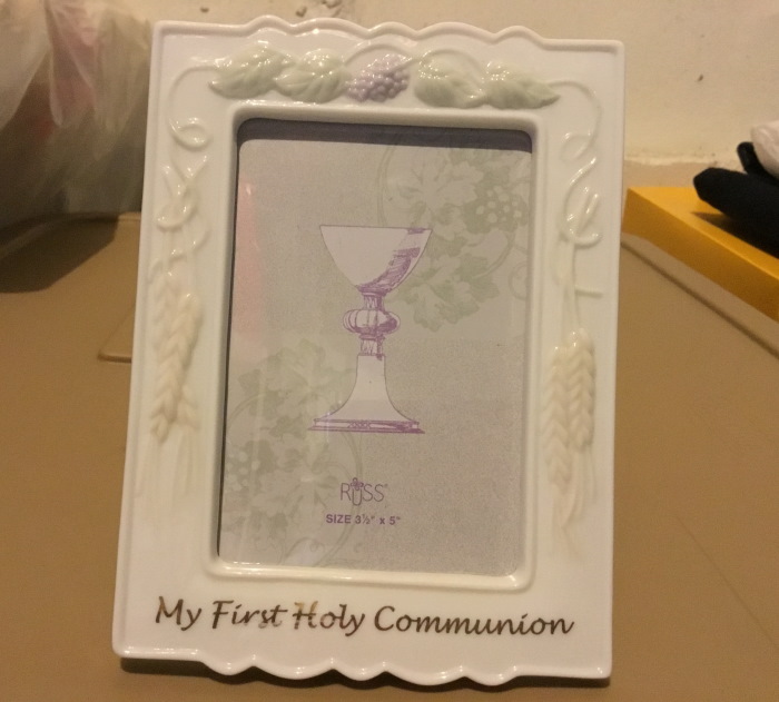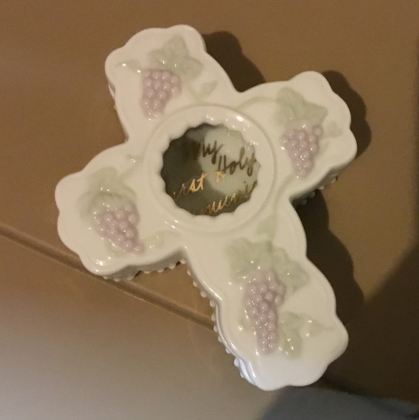 Ceramic First Holy Communion box and picture frame (holds 5″x3.5″ photo). New but about 20 years old.