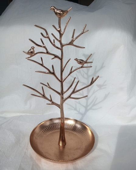 Metallic jewelry tree and ring stand, gold finish, 12 inch height