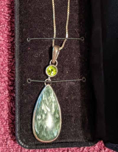 Pre-owned jewelry. Silver Necklace from Finland. Tourmaline (small), Jasper (large stone)