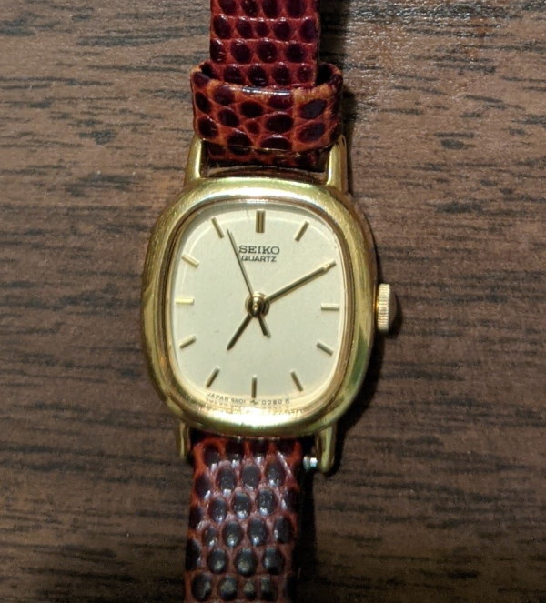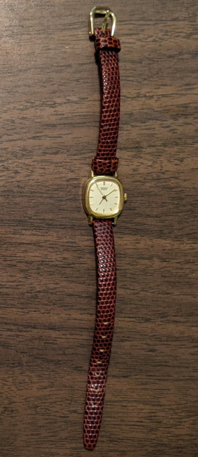 Seiko Quartz gold color w/brown strap woman’s wristwatch. New $12 battery included.