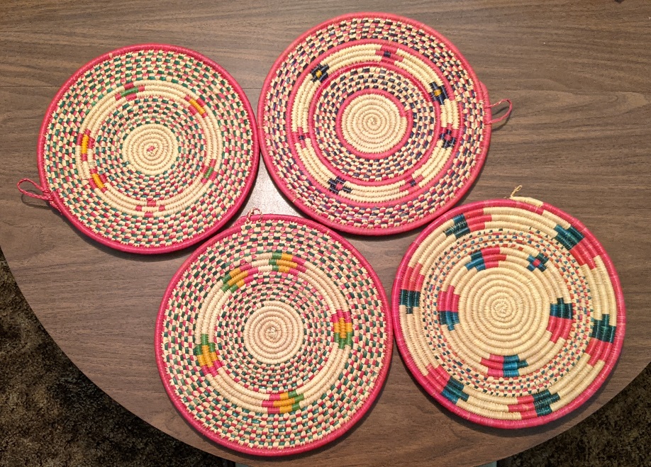 Set of 4 round different pattern mats / wall hangings 12”. Condition: NEW